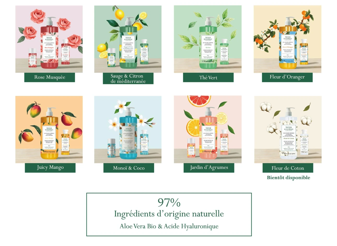Enrichis en aloe vera bio et acide hyaluronique, nos gels douche 2-en-1 corps et cheveux nettoient sans agresser, hydratent durablement, et préservent l’équilibre cutané. Une formule pensée avec exigence, pour transformer une routine en véritable instant de bien-être.